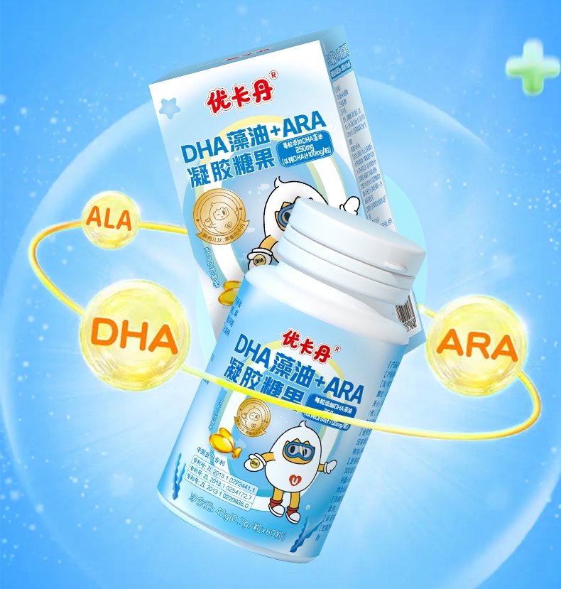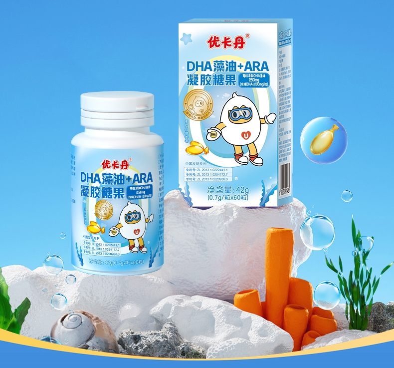 優(yōu)卡丹DHA藻油+ARA凝膠糖果│60粒大容量,守護孩子超長假期